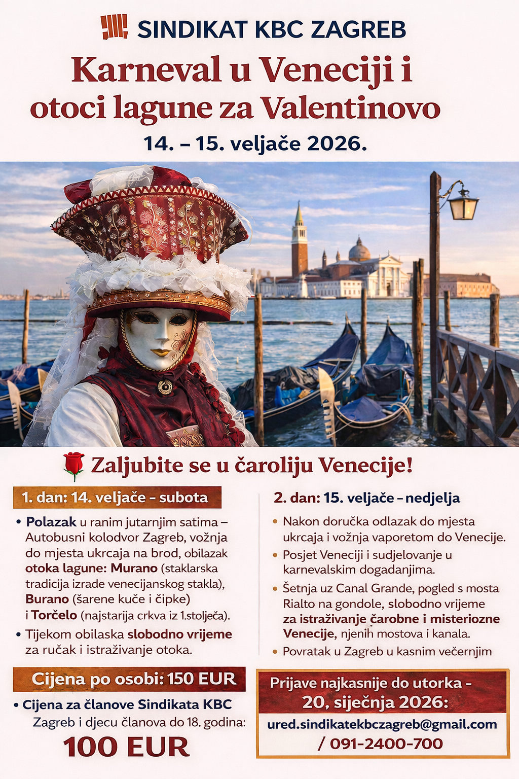 povratnu vožnju brodom do Venecije – 30 EUR, plaćanje na licu mjesta